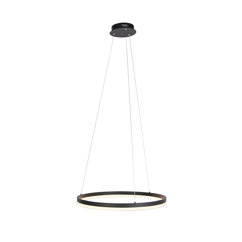 Een strakke en moderne hanglamp is deze Anello. De bovenkant van de ring is strak mat zwart en de onderkant bestaat uit een ingebouwde LED ring. De LED ring heeft 40 watt en geeft 4358 lumen. Deze hanglamp heeft een heel speciaal ingebouwd dimsysteem. De lamp is drie staps dimbaar. Dat wil zeggen dat je zelf je dimstand kan kiezen. Op stand 1 schijnt de lamp voor 100%, op stand 2 voor 60% en stand 3 is enorm gezellig licht: dan schijnt de lamp nog maar voor 30%. Wanneer je op de schakelaar drukt laat de lamp zijn range van standen automatisch zien. Door nogmaals op de schakelaar te drukken kies je een lichtstand uit, hiermee gaat ook de lamp uit. Druk je hierna nog een keer op de schakelaar heeft de lamp de door jou gekozen lichtstand. Deze ring heeft een diameter van 60 cm en is ook verkrijgbaar in 40 cm en 80 cm. Een modern pareltje voor jouw woning!