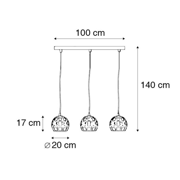 Wauw, Bobby is een echte eyecatcher! Deze opvallende hanglamp is mooi afgewerkt in een antiek gouden kleur en 3 open lampenkappen die zorgen voor een speels lichteffect in de ruimte. De antiek gouden kleur geeft hem een industriële touch boven je eettafel of in de woonkamer. Ook in je thuiskantoor is het een blikvanger. Je kunt de lamp verstellen in hoogte: minimaal 49,5 cm en max. 140 cm: op die manier bepaal je makkelijk de hoogte van de lamp boven de eettafel of boven de salontafel. De montageplaat heeft een lengte van 100 cm en een breedte van 10 cm. Let op: lichtbronnen worden niet meegeleverd, maak hem dus nog compleet met drie decoratieve lichtbronnen (E27 fitting van max. 25 Watt). Een echte sfeermaker in huis.