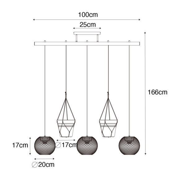 Een lamp waar je ook nog eens planten in kan hangen? Is dat even ideaal. Flor heeft plek voor twee van je groene vrienden. De gouden industriële hanglamp heeft een diepte van 20 cm, een hoogte van 166 cm en een lengte 100 cm. De montageplaat heeft een hoogte 2,5 cm, een lengte van 25 cm en een breedte 8 cm. De hanglamp komt inclusief drie lampenkappen en deze hebben elk een diameter van 20 cm en een hoogte van 17 cm. De plantenpotjes hebben elk een diameter van 17 cm. Vergeet niet om nog drie lichtbronnen met E27 fitting (max. 40 watt) er los bij te bestellen. De lamp is dimbaar (dimmer niet inbegrepen). Groen en licht in huis, wat wil je nog meer?