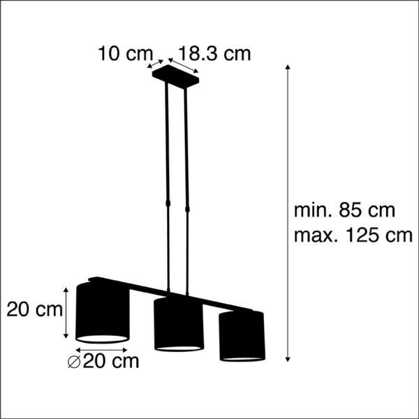 Ben je op zoek naar de ideale combinatie tussen uniek en tijdloos? Dan is deze Combi precies wat je zoekt. Een erg stijlvolle hanglamp. De drie velours lampenkappen (diameter van 20 cm) in pauwenprint zorgen voor een echte eyecatcher. Maak je woonkamer, keuken of eetkamer compleet met deze hanglamp. Kies drie leuke lichtbronnen (passend in een E27 fitting) van elk max. 40 Watt. Deze lamp is dimbaar met een externe dimmer, maak het dus extra gezellig! Hij is tevens verstelbaar in hoogte: een maximale hoogte van 125 cm en minimum 85 cm. Bepaal dus zelf de hoogte van jouw unieke hanglamp!