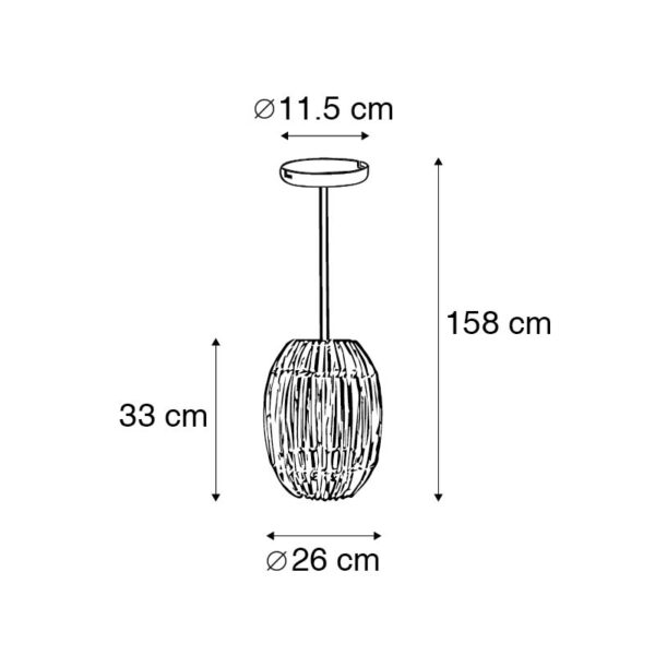 Hanglamp Canna Capsule zorgt voor een landelijke touch in je interieur. Zijn combinatie van staal met bamboe zorgt voor een natuurlijke uitstraling. De hanglamp heeft een diameter van 26 cm en heeft een hoogte van 158 cm. De hanglamp is verstelbaar in hoogte, deze kan je zelf inkorten. De montageplaat heeft een diameter van 11,5 cm en een hoogte van 2,5 cm. Je maakt Canna Capsule af met een lichtbron met E27 fitting van max. 40 watt. Vergeet deze er niet nog los bij te bestellen. Fleur jouw woonkamer, slaapkamer of eetkamer op met Canna Capsule!