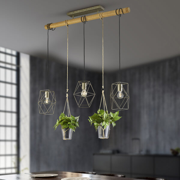 Hanglamp Sarah past heel goed bij een landelijk interieur. De Organic Nature stijl zie je helemaal terug komen in deze lamp door de natuurlijke materialen en planten. Wij zijn fan! Sarah is gemaakt van staal met glas en hout. Hij heeft een lengte van 115 cm, een breedte van 22 cm en is verstelbaar in hoogte; maximaal 150 cm en minimaal 70 cm hoog. De kappen hebben ieder een diameter van 22 cm en een hoogte van 25 cm. De montageplaat heeft een lengte van 40 cm, breedte van 11 cm en hoogte van 2,5 cm. Je maakt Sarah compleet met 3 lichtbronnen met ieder een E27 fitting (max. 40 Watt). Zorg dat je deze er nog los bij besteld. Om extra sfeer te creëren kun je de lamp aansluiten op een dimmer. Haal de landelijke sferen in huis met de hanglamp Sarah. Perfect boven de eettafel, in de woonkamer of op kantoor. Een beetje natuur in huis is nooit verkeerd!