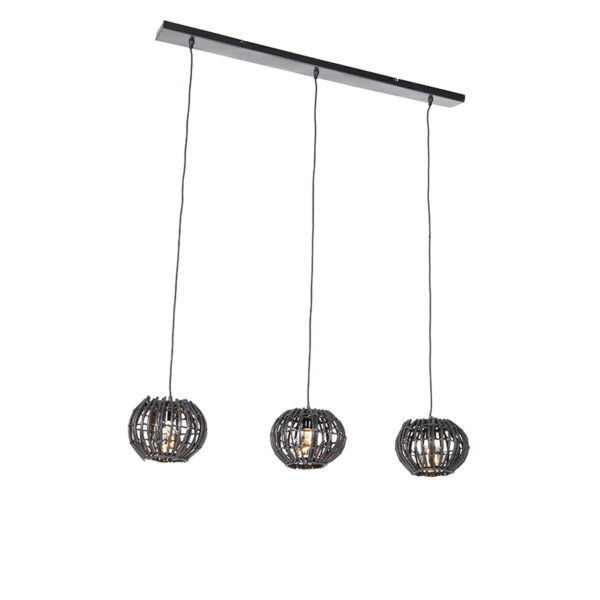 Een landelijke lamp met een stoer tintje, vooral dankzij de zwarte kleur. Met de 3 lichtpunten is het een speelse lamp en staat hij mooi boven de eettafel. Landelijke hanglamp Canna is zwart en gemaakt van bamboe met staal. Hij heeft een diameter van 23 cm en een lengte van 123 cm. Hij is in hoogte verstelbaar met een minimale hoogte van 54 cm en een maximale hoogte van 147 cm. De montageplaat heeft een diameter van 23 cm en een hoogte van 21 cm. Voor deze lamp heb je drie lichtbronnen nodig met een E27 fitting (max. 40 watt) en deze zijn niet inclusief. Vergeet dus niet om er nog drie lichtbronnen bij te halen. Met een externe dimmer kun je de lichtsterkte zelf bepalen, ideaal! (dimmer niet inbegrepen). Maak je eethoek af met hanglamp Canna!