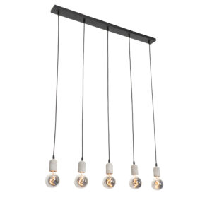 Hanglamp zwart met beton 5-lichts – Pedra