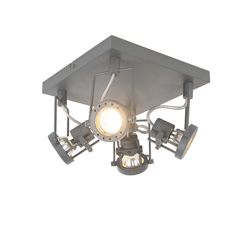 Erg mooie metalen plafond- of wandspot die zorgt voor een aangename en overzichtelijke lichtverdeling zonder dat dit ten koste hoeft te gaan van de sfeer! Deze donkergrijze (antracietkleurige) lamp is een echte toevoeging aan je interieur en het mooie metaal geeft het een moderne look terwijl het design toch industrieel blijft! De lamp heeft vier GU10 fittingen en wordt exclusief lichtbronnen geleverd, zorg dat je deze er dus nog bij besteld (max. 50 Watt). De lamp is dimbaar met een externe dimmer (dimmer niet inbegrepen). De lamp heeft een hoogte van 15,5 cm. De montageplaat heeft een lengte van 24 cm en een breedte van 24 cm. Erg leuk in de keuken of in de hal! Koop er meerdere tegelijk om lekker te kunnen variëren met het lichtaccent in je ruimtes!
