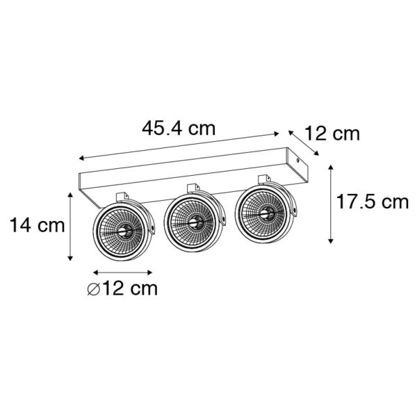 Wauw wat een toffe spot is deze 3-lichts Go! Doordat de spots los van elkaar verstelbaar zijn kun je zelf bepalen waar het licht naar toe schijnt, super handig. De spot is gemaakt van aluminium en afgewerkt in het zwart. Hij heeft een diepte van 12 cm, hoogte van 17,5 cm en lengte van 45,4 cm. De montageplaat heeft een diepte van 12 cm, hoogte van 3,5 cm en lengte van 45,4 cm. Je maakt Go af met 3 lichtbronnen die ieder beschikken over een G9 fitting (max. 3 Watt). Vergeet deze er niet nog los bij te bestellen. De kappen hebben ieder een diameter van 12 cm en een hoogte van 14 cm. Maak jouw woonkamer, eetkamer of werkkamer af met de industriële spot Go!