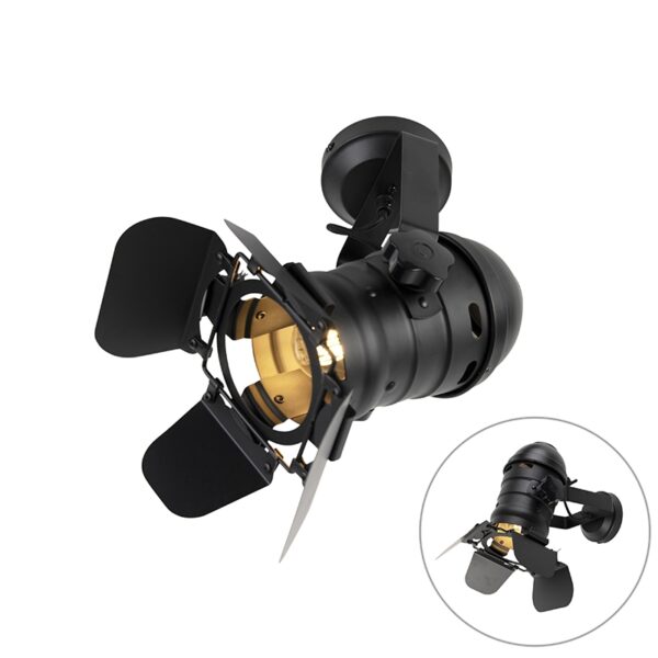 Wat een eyecatcher in huis de studiospot Movie. Door de zwarte kleur, het formaat en de kleppen rond de lamp is het echt een lamp die thuishoort in een industrieel interieur. Hij heeft een hoogte van 32 cm. De diameter van de lampenkap is 23 cm. De montageplaat om hem te monteren aan de wand of aan het plafond heeft een diameter van 11,5 cm. De lamp heeft een grote E27 fitting en wordt exclusief lichtbron geleverd, zorg dat je deze er dus nog bij besteld (max. 60 Watt). De spot is tevens dimbaar met een externe dimmer; je kan dus zelf helemaal je sfeer bepalen. Door de kantelbare spot kun je het licht laten schijnen waar jij dit wil, ideaal dus deze wand- en plafondspot. Geef jouw interieur een stoere look met deze Movie!