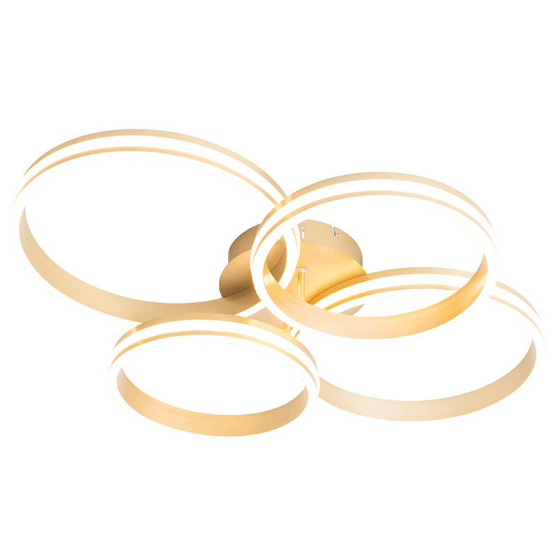 Wauw, wat een toffe plafondlamp is Navara! De vier lichtgevende cirkels zorgen voor een prachtig lichteffect in de ruimte. De plafondlamp is gemaakt van aluminium met kunststof en staal. Hij is afgewerkt in het goud, dat maakt hem erg modern. Hij heeft een hoogte van 13 cm, lengte van 78 cm en breedte van 64 cm. De montageplaat heeft een diameter van 20 cm en een hoogte van 4 cm. Rondas beschikt over niet-vervangbare LED verlichting. Deze heeft een lichtvermogen van 3118 lumen en 2700 Kelvin. Daarmee geeft hij erg veel licht! De lamp is ook dimbaar met de 3-staps dimmer, eenvoudig te besturen met je eigen lichtschakelaar aan de muur. Zo heb je altijd de gewenste sfeer in huis! Plafondlamp Navara staat perfect in de eetkamer, op kantoor of in de hal. Deze design lamp mag niet ontbreken in jouw interieur!