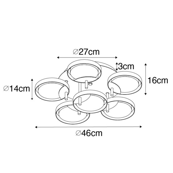 Zorg voor een moderne touch in huis met Patrick. Deze plafondlamp is gemaakt van kunststof met staal en afgewerkt in een tijdloze zwarte kleur. Hij heeft een diameter van 46 cm en een hoogte van 16 cm. De montageplaat heeft een diameter van 27 cm en een hoogte van 3 cm. De 6 lichtbronnen gaan 50.000 branduren mee en zitten vast in het armatuur. Je kan het extra gezellig maken in huis met een externe dimmer, deze lamp is namelijk dimbaar. Score deze moderne plafondlamp zodat jouw ruimte gaat stralen!