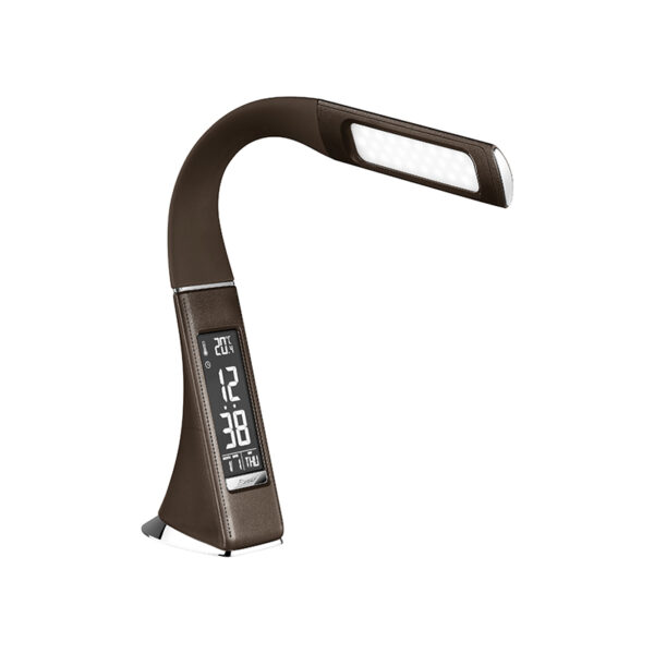 Deze bruine kunststof design tafellamp Alex heeft een multifunctionele werking. Naast dat hij perfect licht geeft voor op de slaapkamer tijdens het lezen van een boek, is deze lamp ook voorzien van een kalender, alarm en klok. Hierdoor ook ideaal als nachtlampje en wekker. Met de touch dimmer kun je eenvoudig de lichtsterkte aanpassen. Deze lamp heeft 3 verschillende lichtstanden. Hij kan gaan van 100% functioneel licht naar minimaal 30% sfeerlicht. Alex beschikt over niet-vervangbaar LED (geïntegreerd LED). De 3000 Kelvin en 350 lumen zorgen voor warm wit licht in jouw interieur. De lamp heeft een hoogte van 50 cm. Het bovenste gedeelte is ook nog eens verstelbaar, zo bepaal jij waar je het licht laat schijnen. Deze tafellamp zorgt door zijn strakke design voor een mooie aanvulling aan je interieur.