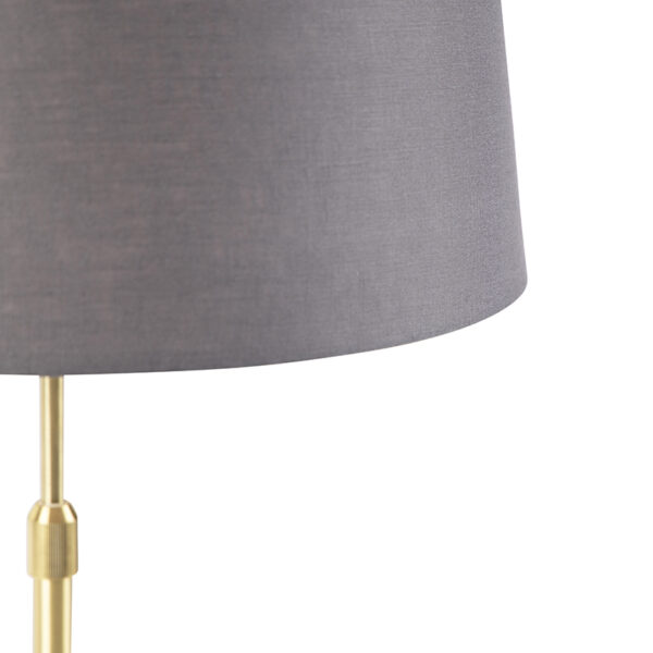 Hou jij wel van een klassieke touch in je interieur? Dan is deze Parte tafellamp echt iets voor jou! Een moderne tafellamp, afgewerkt in goud/messing metaal. Voorzien van een elegante grijze linnen lampenkap. Op het armatuur zit een aan- en uitschakelaar. De Parte kan je makkelijk verstellen in hoogte dankzij het uitschuif mechanisme. Zo heeft het armatuur (zonder kap) een maximale hoogte van 50 cm, maar je kan hem verstellen naar minimaal 34 cm, kies dus zelf de hoogte die jij wil! De voet van de lamp heeft een diameter van 14 cm. Hij is voorzien van een E27 fitting, zorg dus nog voor een lichtbron (max. 60 Watt) voor in deze Parte en geniet van jouw sfeerlamp voor in de woonkamer of slaapkamer! Hij is makkelijk te dimmen met een externe dimmer. Zorg voor een aangename sfeer in huis met jouw tafellamp!
