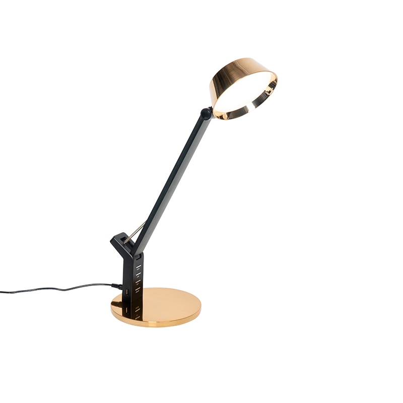 Ben je op zoek naar een fijne tafellamp voor het lezen van de krant, een boek of voor tijdens het werken? Dan is Edward wat je zoekt! Deze tafellamp is gemaakt van aluminium met kunststof en is afgewerkt in het zwart met messing. Hij heeft een totale hoogte van 45 cm, lengte van 32 cm en breedte van 17 cm. De voet heeft een diameter van 17 cm. Edward wordt inclusief snoer (130 cm) en stekker geleverd. De tafellamp beschikt over niet-vervangbare LED-verlichting met een lichtvermogen van 480 lumen en 3000-6000 Kelvin. De lichtsterkte is erg hoog, maar gelukkig te verstellen. Op de poot van de tafellamp staan verschillende standen om de lichtsterkte aan te passen, zo heb je altijd het gewenste licht. De tafellamp beschikt ook over een USB-aansluiting voor bijvoorbeeld het opladen van je smartphone. Tafellamp Edward is waar je naar op zoek bent!