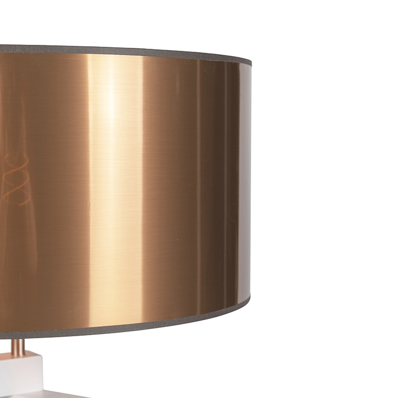 Met de Puros zorg je voor een leuke eyecatcher in huis! De witte kleur en de assymetrische vorm van de poten geeft hem een leuk extraatje. De koperkleur van de kap brengt sfeer in huis! De kap heeft een diameter van 50 cm en een hoogte van 25 cm. De lamp heeft een totale hoogte van 151 cm. Het artikel wordt met kabel geleverd waarvan de lengte maximaal 320 cm is. De lamp is tevens dimbaar met een externe dimmer (dimmer niet inbegrepen); maak het in de avond dus extra gezellig met de Puros! Maak je vloerlamp compleet met een leuke lichtbron passend in een E27 fitting (max. 60 Watt). Laat je woonkamer stralen met deze Puros!