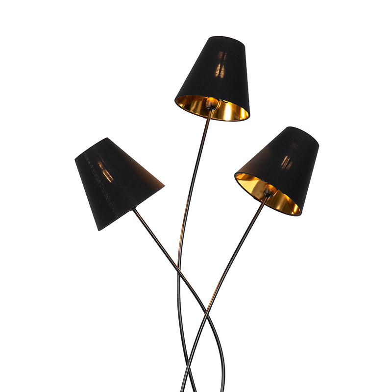 Wauw, wat een toffe vloerlamp is Melis! Deze past perfect in een modern of design interieur. De lichtpunten die om elkaar heen gedraaid zitten en allemaal een verschillende hoogte hebben zorgen voor een speels effect. De lamp is gemaakt van staal met stof en is afgewerkt in het zwart. De binnenzijde van de stoffen lampenkappen zijn goudkleurig, dit zorgt voor een gezellig en warm lichteffect in de ruimte. Melis heeft een hoogte van 130 cm, lengte van 48 cm en breedte van 17 cm. De voet heeft een hoogte van 2,8 cm, lengte van 17 cm en breedte van 17 cm. De lampenkappen hebben ieder een diameter van 16 cm en een hoogte van 14,5 cm. De lamp wordt inclusief snoer (250 cm) en stekker geleverd. Je maakt de vloerlamp af met 3 lichtbronnen die ieder beschikken over een E14 fitting (max. 40 Watt). Zorg dat je deze er nog los bij besteld. Melis is dimbaar met een externe dimmer, deze is niet inbegrepen. Voeg deze sfeervolle vloerlamp toe aan je woonkamer, werkkamer of slaapkamer. Met Melis maak je het mooier!