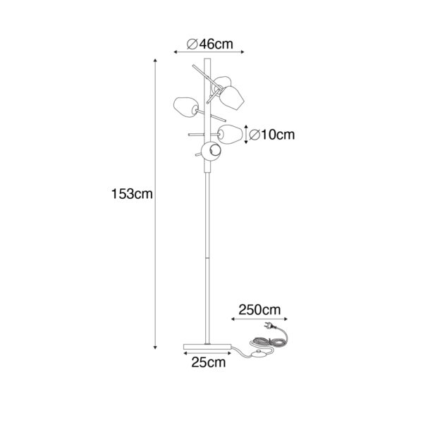 Een stijlvol en uniek design, deze Elien vloerlamp! Een klassieke lamp die een mooie afwerking heeft met een goud armatuur en glazen lampenkappen. Het is een echte sfeerlamp die je overal in huis kan neerzetten! Een mooie toevoeging in de woonkamer, de hal of in de slaapkamer. Hij heeft een hoogte van 153 cm en een diameter van 46 cm. Laat je Elien stralen in huis! Let op: de lamp wordt zonder lichtbronnen geleverd, bestel zelf nog 5 G9 lichtbronnen bij van max. 28 Watt. Een echte stijlvolle toevoeging in je interieur, deze Elien!