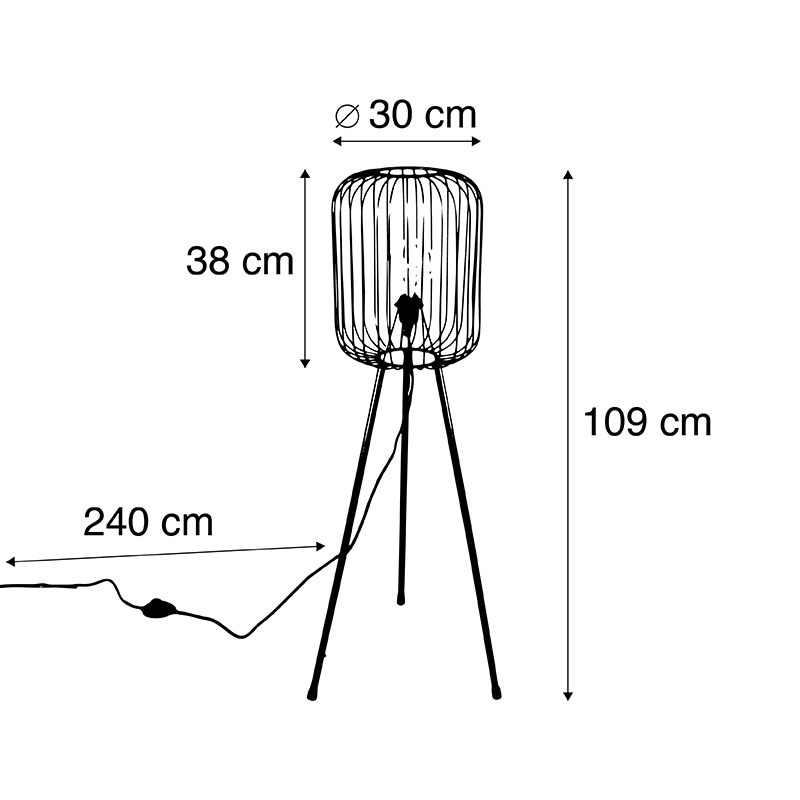 Wauw wat een mooie tripod vloerlamp is Wire! Door zijn open structuur gecombineerd met staal dat is afgewerkt in messing krijgt de lamp een moderne uitstraling. De vloerlamp heeft een diameter van 30 cm en een hoogte van 109 cm. De kap heeft een diameter van 30 cm en een hoogte van 38 cm. Het snoer heeft een lengte van 240 cm. Je maakt de vloerlamp af met een lichtbron met E27 fitting (max. 40 Watt). Zorg dat je deze er nog los bij besteld. Kies voor een mooie lichtbron, omdat deze goed zichtbaar is in het armatuur. Dat maakt de vloerlamp nog mooier! Wire is tevens dimbaar met een externe dimmer, deze is niet inbegrepen. De vloerlamp komt het beste tot zijn recht in de woonkamer, werkkamer of eetkamer. Geef jouw interieur een moderne touch met de vloerlamp Wire!