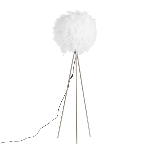 Met deze opvallende, met veren versierde vloerlamp heb je meteen een prachtige eye-catcher in huis! Deze lamp zorgt al voor sfeer als hij niet eens aan staat, kun je nagaan hoe prachtig deze lamp is als het fijn warm wit licht uitstraalt! De lamp is tevens dimbaar met een externe dimmer (dimmer niet inbegrepen). Je maakt de lamp af met een lichtbron met een fitting van E27 (max. 40 Watt). De lamp heeft een hoogte van 155 cm. Het snoer heeft een lengte van 90 cm. Haal sfeer in huis met de Feather vloerlamp!