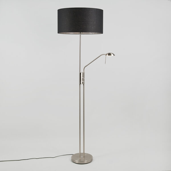 De vloerlamp Luxor is niet alleen prachtig om te zien maar ook nog eens ontzettend nuttig. De vloerlamp Luxor is namelijk uitgerust met een buigbare leeslamp die ideaal te gebruiken is wanneer je de krant, een tijdschrift of boek aan het lezen bent. De vloerlamp zelf beschikt over een strak ontwerp dat met de zwarte lampenkap prachtig gecombineerd wordt. De kap met een diameter van 50 cm is vervangbaar en daarom kun je zelf bepalen wanneer het tijd is voor een nieuwe uitstraling in jouw interieur. Vloerlamp Luxor heeft een hoogte van 179 cm, de voet heeft een diameter van 25 cm. Het snoer is 175 cm lang. Voorzie voor de leesarm een G9 lichtbronnetje. De andere lamp heeft een grote E27 fitting, hiervoor dien je zelf nog een lichtbron te bestellen. De dimmer op het armatuur maakt deze vloerlamp met leesarm helemaal compleet. Geniet van een functionele en schitterende vloerlamp die de ‘vergeten’ hoek in jouw interieur weer helemaal tot leven brengt.
