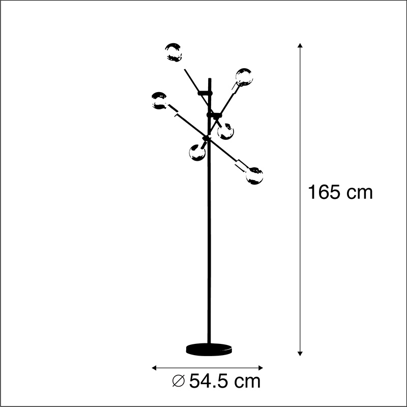 Dit is wel een hele bijzondere eye-catcher, de Sydney is een 6-koppige vloerlamp met een modern-industriële look. De armen van de lamp zijn ook nog eens draaibaar waardoor je lekker kunt variëren met de lichtverdeling. De lamp heeft een diameter van 54,4 cm en een hoogte van 165 cm. Je maakt de lamp af met zes lichtbronnen met een E27 fitting (max. 28 Watt), deze moeten wel nog los bijbesteld worden. De lamp is dimbaar met een externe dimmer (dimmer niet inbegrepen). Wil je jouw huis een unieke sfeerbrenger rijker maken? Haal dan de Sydney in huis!