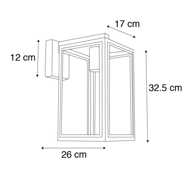 Deze industriële Sutton down donker grijze wandlamp bestaat uit een vierkant frame voorzien van glazen panelen aan de zijkanten. Hierdoor komt er een mooi strijkeffect op de buitenmuur. Daarom is het belangrijk dat je kiest voor een bijzondere lichtbron, omdat deze zichtbaar is! Door een lichtbron passend in een E27 fitting (max. 100 Watt) erbij te bestellen maak je deze wandlamp helemaal af. De Sutton down heeft een hoogte van 32,5 cm en een lengte van 17 cm. De diepte van de lamp is 25,5 cm. De lamp is tevens dimbaar met een externe dimmer (dimmer niet inbegrepen), voor een extra gezellige sfeer in de avond! Hij is gemaakt van RVS en beschikt over een IP-waarde van IP44 waardoor hij perfect bestendig is tegen regen! Een echte meerwaarde aan jouw voor- of achterdeur.